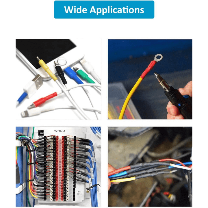 Heat shrink tube (or, heat shrink tubing) is a tube that shrinks in diameter when heated. After being heated with a heat gun, it shrinks to 50% of its original diameter. Heat shrink sleeve with a completely thermoplastic covered interior surface. When heated, the sleeve’s diameter shrinks by 2:1 and the interior resin melts. The sleeve and the resin harden as they cool. This combination ensures resistance to pullout and perfect waterproofing for your connections, preventing a sleeve from slipping. In the case of a connector mounted on a cable (coaxial, for example), this sleeving ensures reinforcement at the point where the cable is generally subject to stress when the radius of the curve is small.