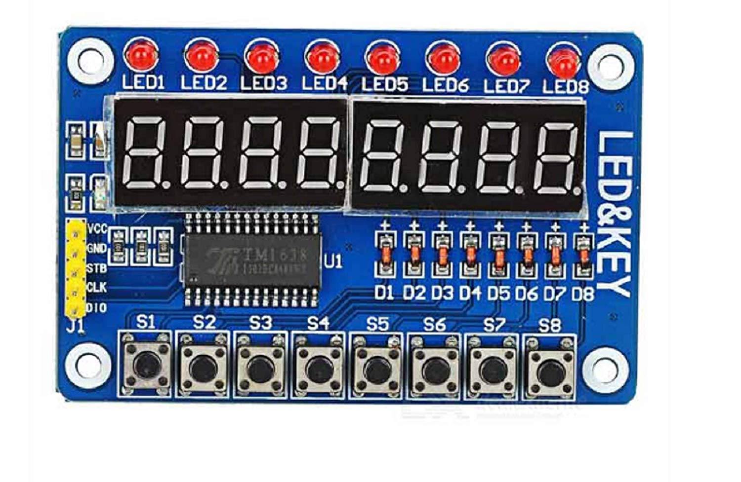 The TM1638 Button Digital LED Display Module is used in chip TM1638, a collection of these three common MCU peripheral circuit, the biggest feature just takes three microcontroller like Arduino IO port to drive, do not need to scan display and key scanning microcontroller intervention, only need to read the relevant register send display data or test button, save MCU resources.